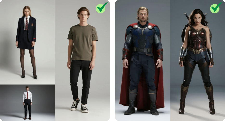 Quando acquisti su Amazon non sei sicuro se un vestito ti stia bene? Usa i video AI body swap per provarlo in modo virtuale. Carica i tuoi video e in un'anteprima a 360° puoi prendere le tue decisioni. Ti promettiamo che nessun dettaglio viene omesso prima dell'acquisto finale e della consegna fisica.